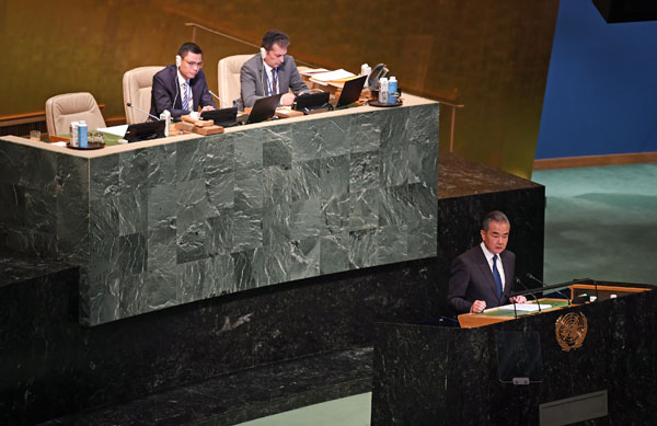Anggota Dewan Negara merangkap Menteri Luar China, Wang Yi telah menyampaikan ucapan dalam pembahasan umum Perhimpunan Agung Pertubuhan Bangsa-bangsa Bersatu (PBB) pada Sabtu waktu tempatan.