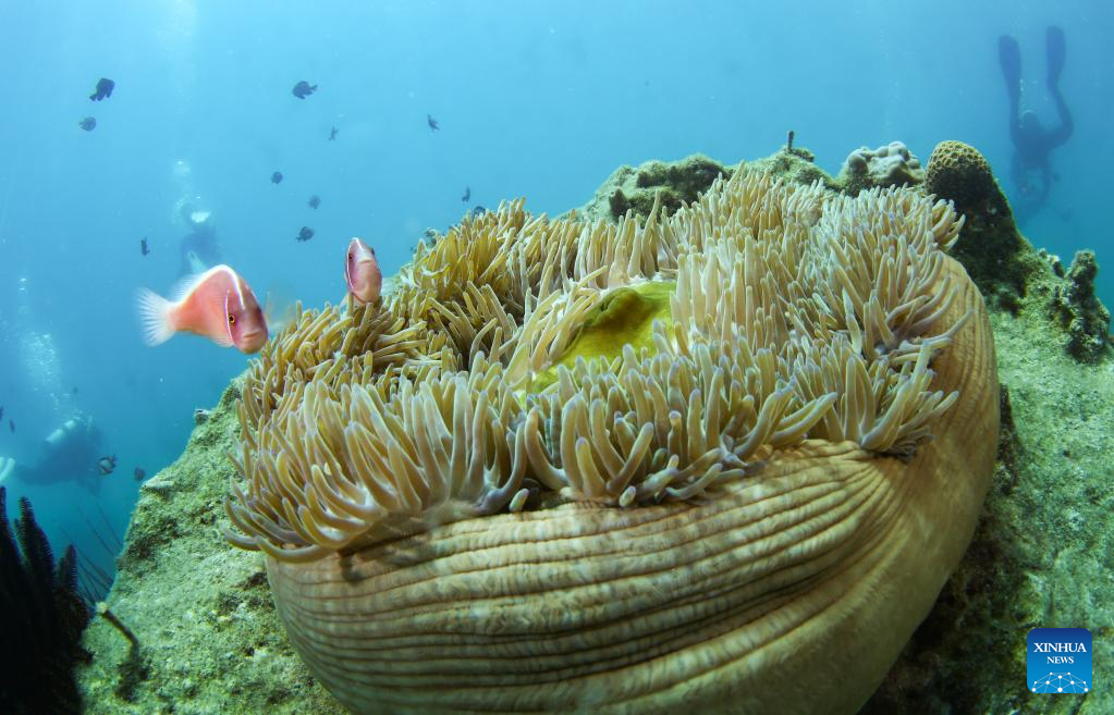 | Foto yang diambil pada 22 Mei 2021 ini menunjukkan ikan badut dan buran laut di sebuah ladang ternak marin di perairan Pulau Wuzhizhou di Sanya, provinsi Hainan, selatan China. (Xinhua/Yang Guanyu) |