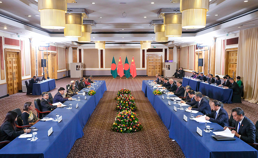 Xi Jinping menyatakan, China bersedia meningkatkan sinergi dalam strategi pembangunan dengan Bangladesh, mengintensifkan kerjasama pragmatik dengan Bangladesh dalam pelbagai bidang supaya melonjakkan hubungan perkongsian strategik China-Bangladesh ke tahap lebih tinggi, dan membawa lebih banyak limpahan manfaat kepada rakyat kedua-dua negara.