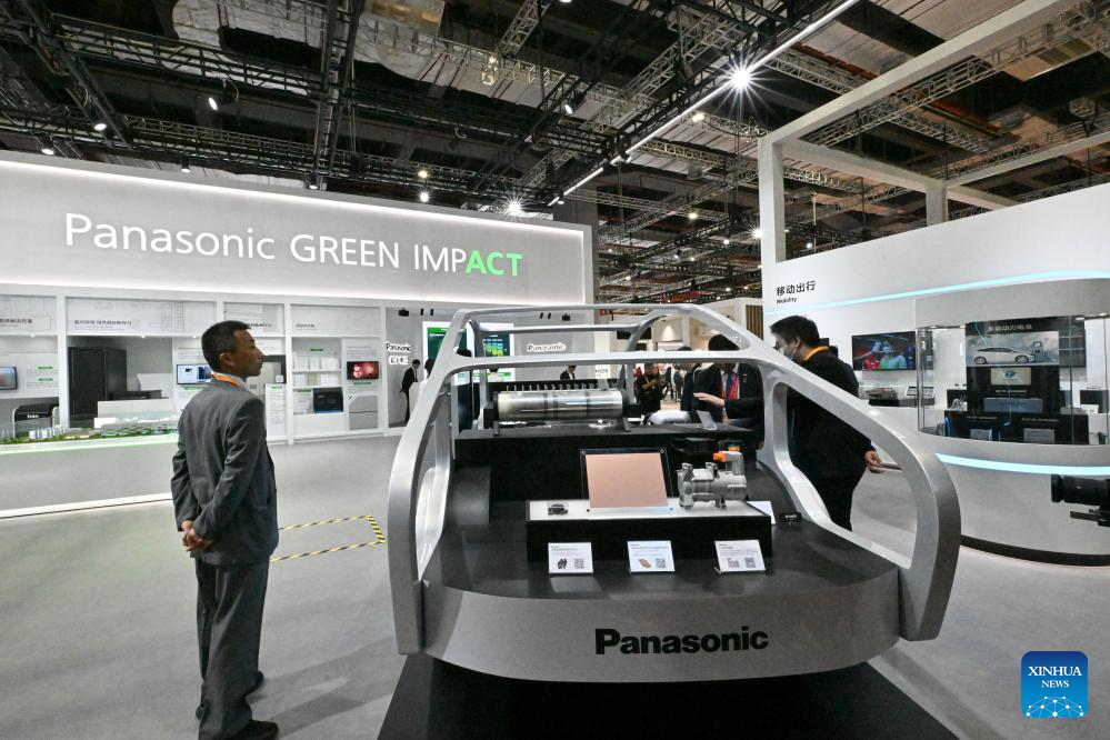 | Pengunjung melawat ruang pameran Panasonic pada Ekspo Import Antarabangsa China (CIIE) ke-7 di Shanghai, 5 November 2024. Edisi terbaru CIIE, iaitu ekspo peringkat negara pertama di dunia yang bertemakan import, membuka tirai di Shanghai, Selasa. (Xinhua/Xin Yuewei) |
