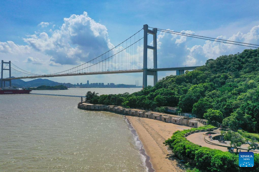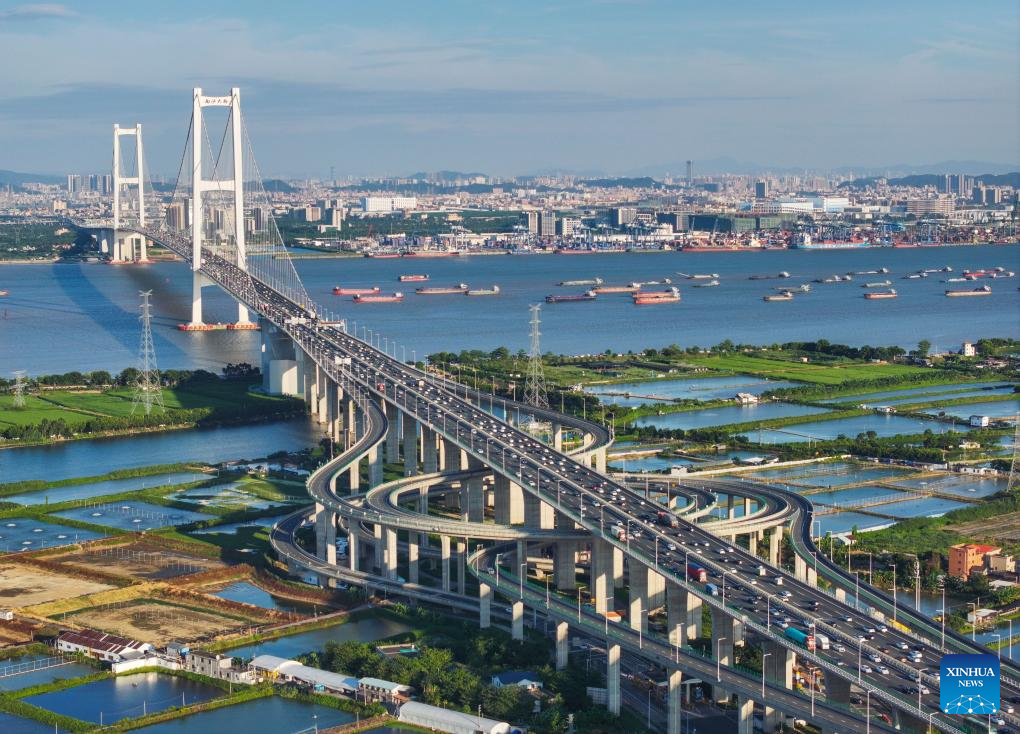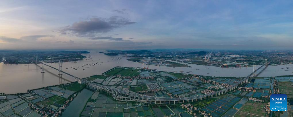 | Foto dron bertarikh 29 Jun 2022 ini menunjukkan pemandangan Jambatan Nansha yang menghubungkan bandar Guangzhou dengan bandar Dongguan di provinsi Guangdong, selatan China. (Xinhua/Liu Dawei) |