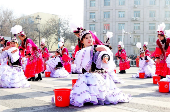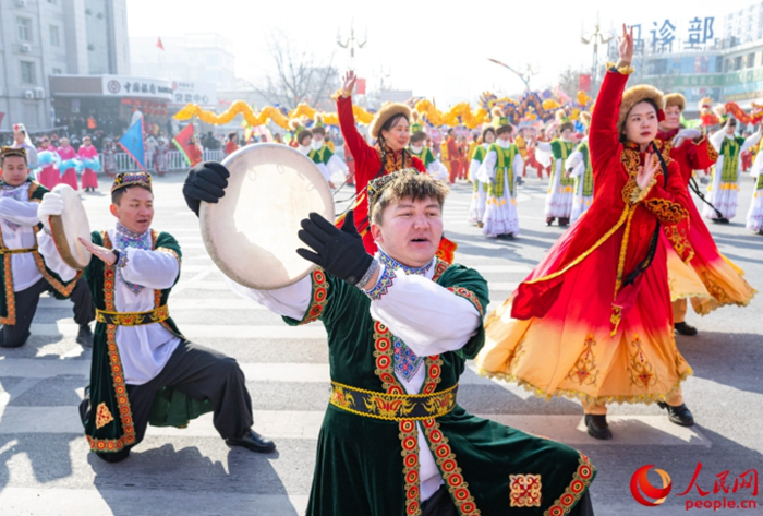 | Bandar Changji menganjurkan pertandingan persembahan shehuo rakyat. (Foto oleh Li Long/People’s Daily Online) |