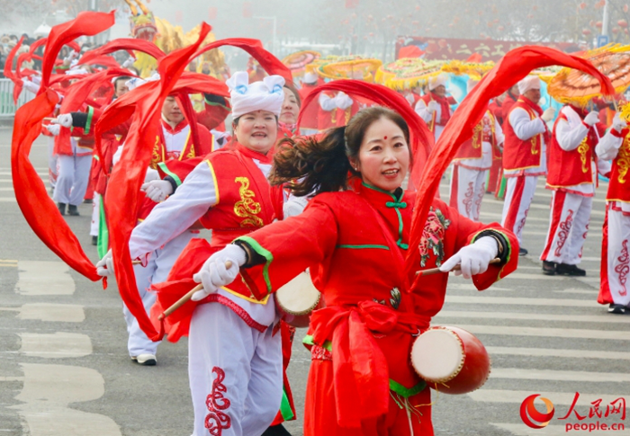| Persembahan shehuo beramai-ramai. (Foto oleh Li Long/People’s Daily Online) |