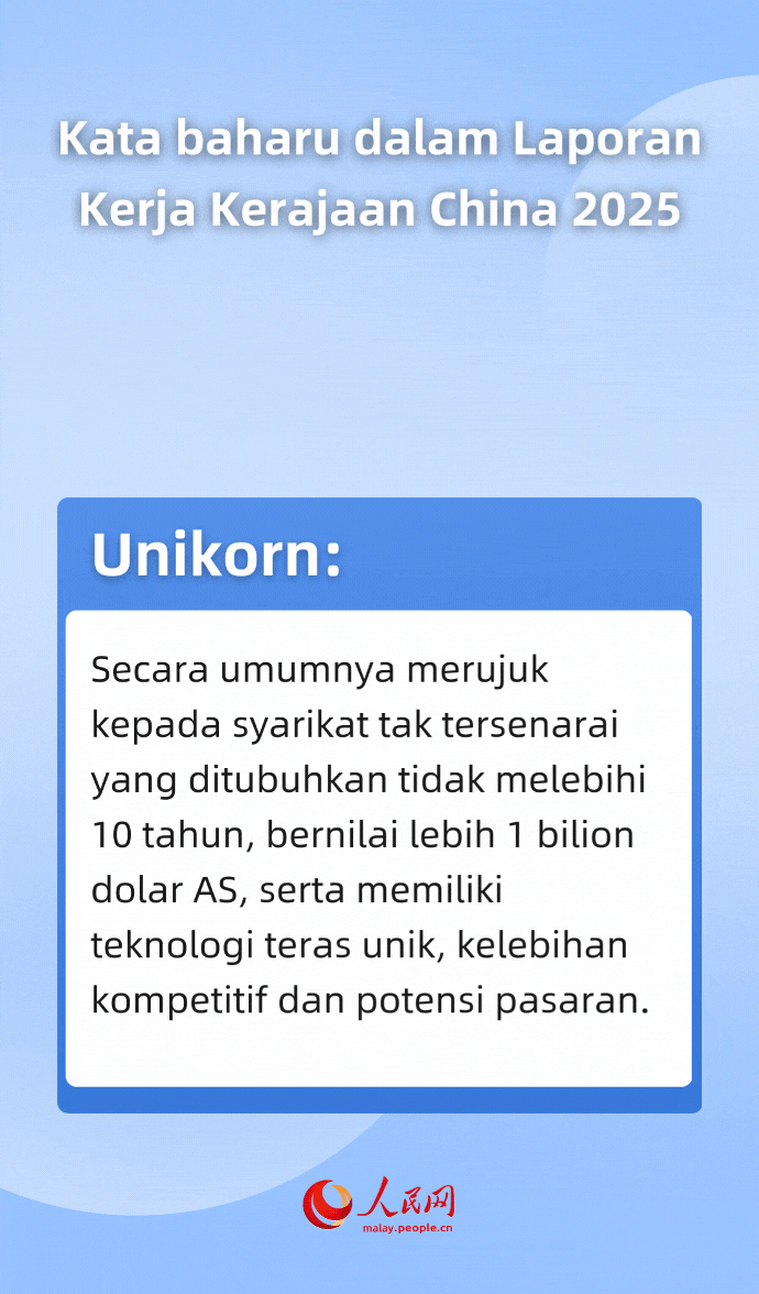 Unikorn: Secara umumnya merujuk kepada syarikat tak tersenarai yang ditubuhkan tidak melebihi 10 tahun, bernilai lebih 1 bilion dolar AS, serta memiliki teknologi teras unik, kelebihan kompetitif dan potensi pasaran.