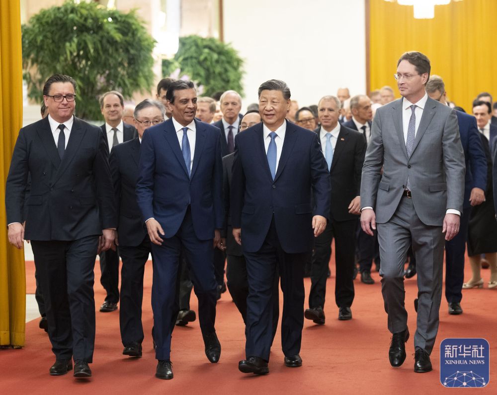 Presiden China Xi Jinping mengadakan pertemuan dengan wakil-wakil komuniti perniagaan antarabangsa di Dewan Besar Rakyat di Beijing pada Jumaat.