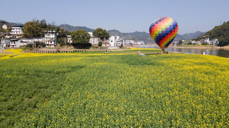 Foto sudut udara yang diambil menggunakan dron pada 22 Mac 2025 ini memaparkan pemandangan Kawasan Pemandangan Sungai Xin’an di Kaunti Shexian, Bandar Huangshan, Provinsi Anhui di timur China. (Xinhua/Shi Yalei)