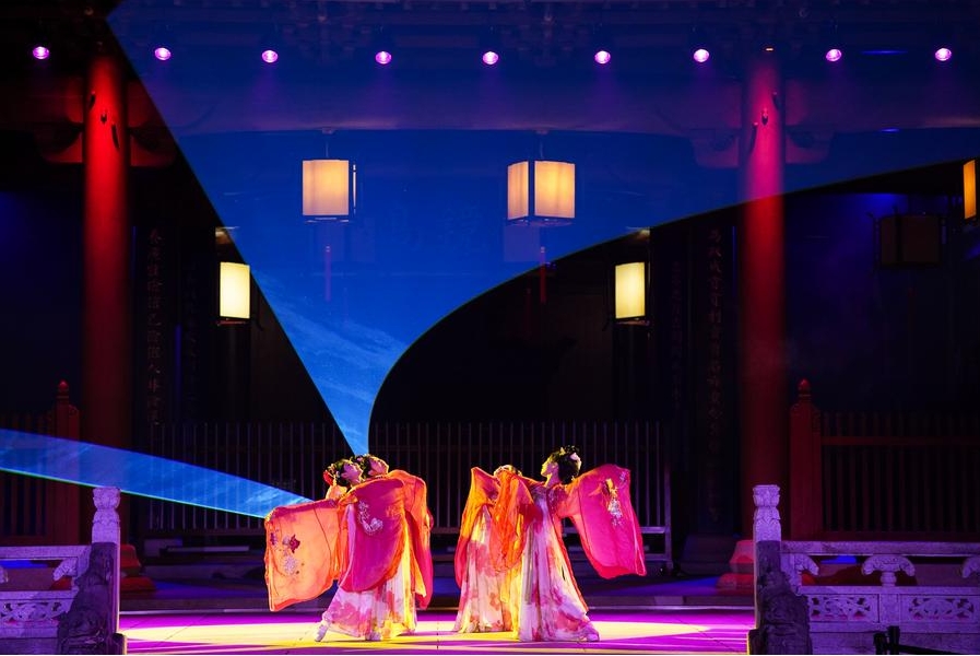 Pengunjung sedang menonton pertunjukkan langsung yang penuh asyik di pekan purba Huizhou, Bandar Huangshan, Provinsi Anhui, di timur China pada 23 Mac 2025. (Xinhua/Zhang Duan)