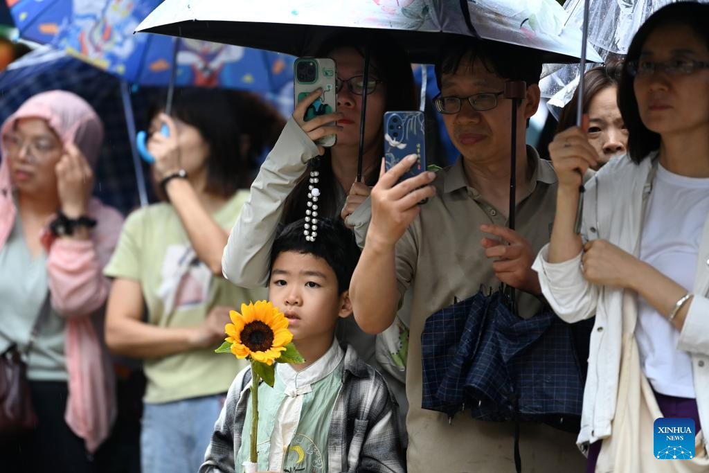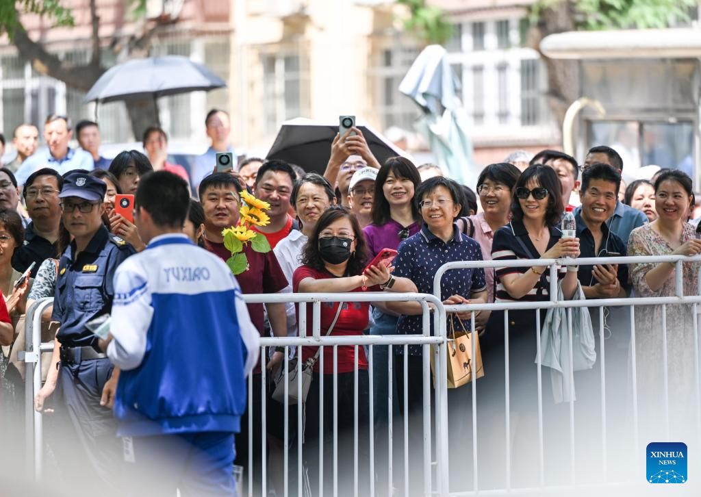 | Ibu bapa melihat anak masing-masing memasuki tempat peperiksaan kemasukan universiti kebangsaan di Xi’an, Provinsi Shaanxi, barat laut China pada 7 Jun 2025. (Xinhua/Zou Jingyi) |