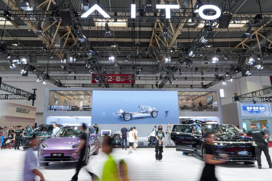 | Orang ramai melawat reruai AITO di ruang Rantai Kenderaan Pintar di CISCE ke-3 di Beijing, ibu kota China pada 19 Julai 2025. (Xinhua/Ju Huanzong) |