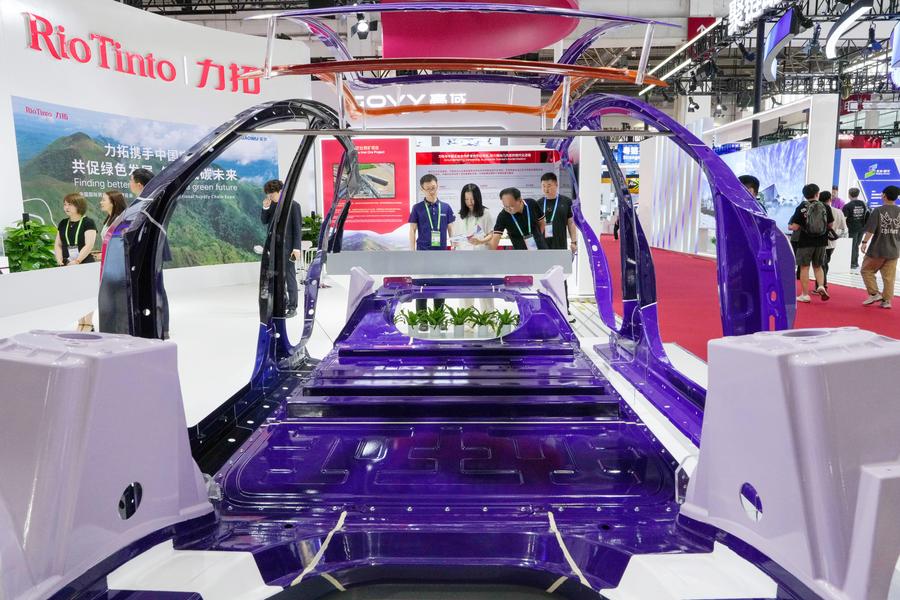 | Orang ramai melawat reruai Rio Tinto di ruang Rantai Kenderaan Pintar di CISCE ke-3 di Beijing, ibu kota China pada 19 Julai 2025. (Xinhua/Ju Huanzong) |
