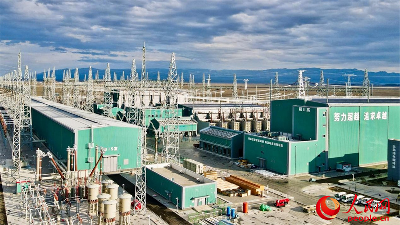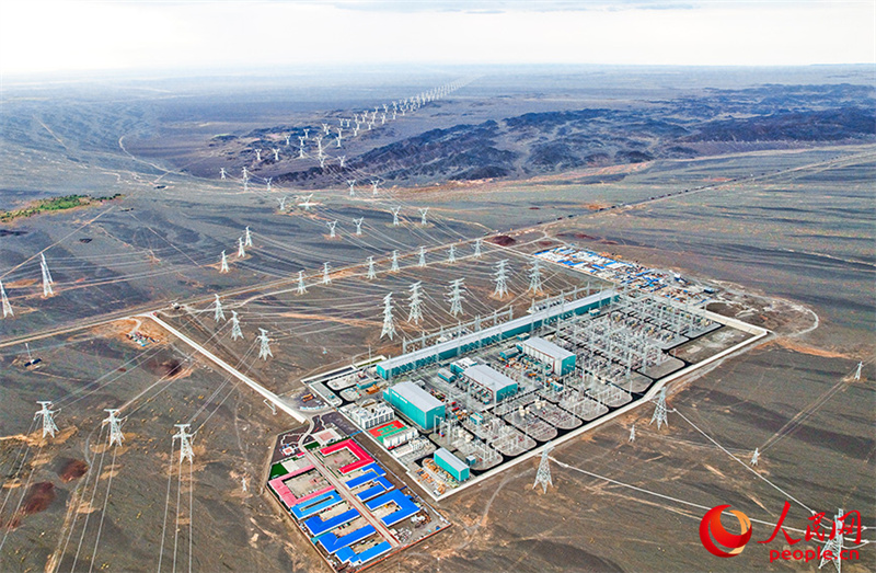 | Foto menunjukkan stesen penukar Barkol projek penghantaran kuasa Hami-Chongqing arus terus voltan ultra tinggi ±800 kilovolt (UHV DC). (People’s Daily Online/Li Xinyang) |