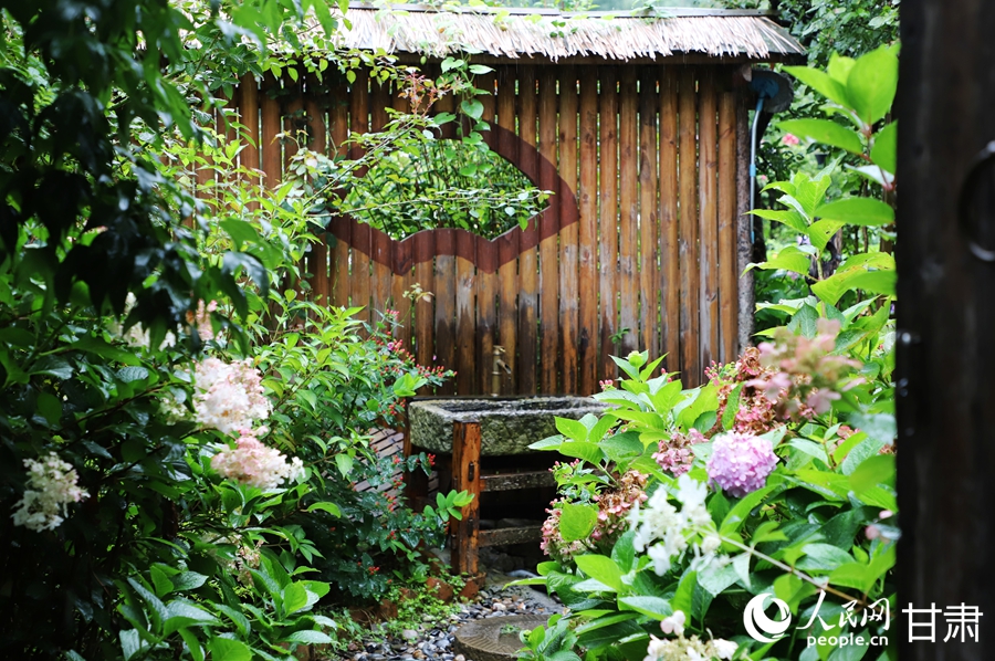 | Foto menunjukkan bunga yang bermekaran di bahagian masuk sebuah B&B di kampung Liziba, Perbandaran Tibet Tielou di kaunti Wenxian, bandar Longnan, Provinsi Gansu di barat laut China. (People’s Daily Online/Shao Lan) |
