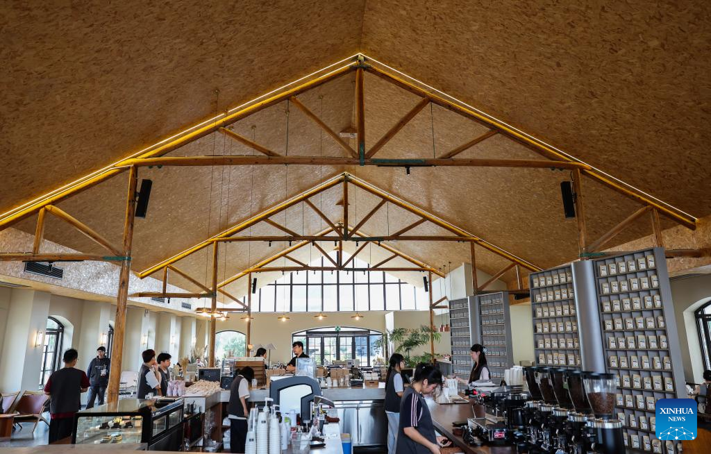 | Orang ramai melawat sebuah kafe yang diubahsuai daripada bangsal di taman industri kebudayaan di Pekan Shendang, Bandar Jiaxing, Provinsi Zhejiang, di timur China pada 19 September 2025. (Xinhua/Xu Yu) |