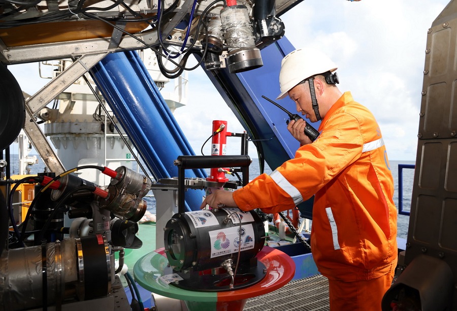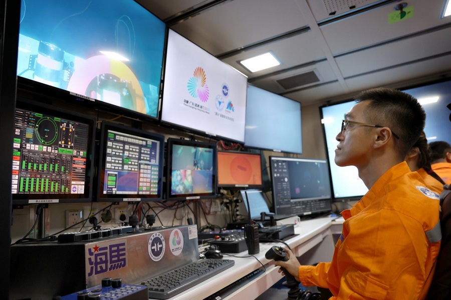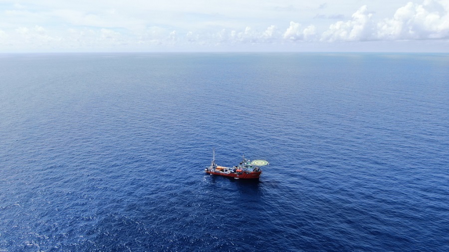 | Kapal penyelidikan “Marine Geology No. 2” yang membawa kenderaan kawalan jarak jauh (ROV) Haima, menjalankan misi menyalakan “api sumber” di perairan utara Laut China Selatan. |