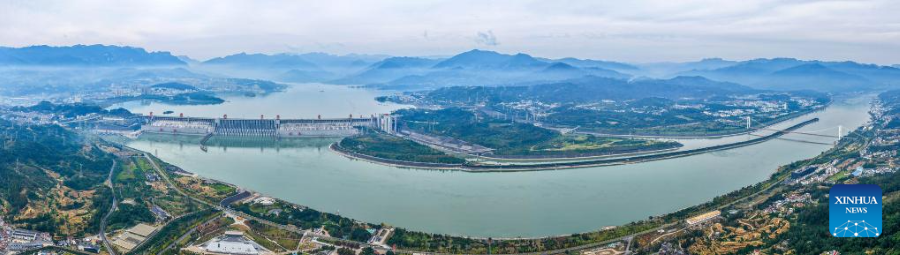 | Foto sudut udara ini mempamerkan pemandangan Empangan Tiga Gaung di Yichang, Provinsi Hubei di tengah China pada 2 November 2025. (Xinhua/Wang Gang) |