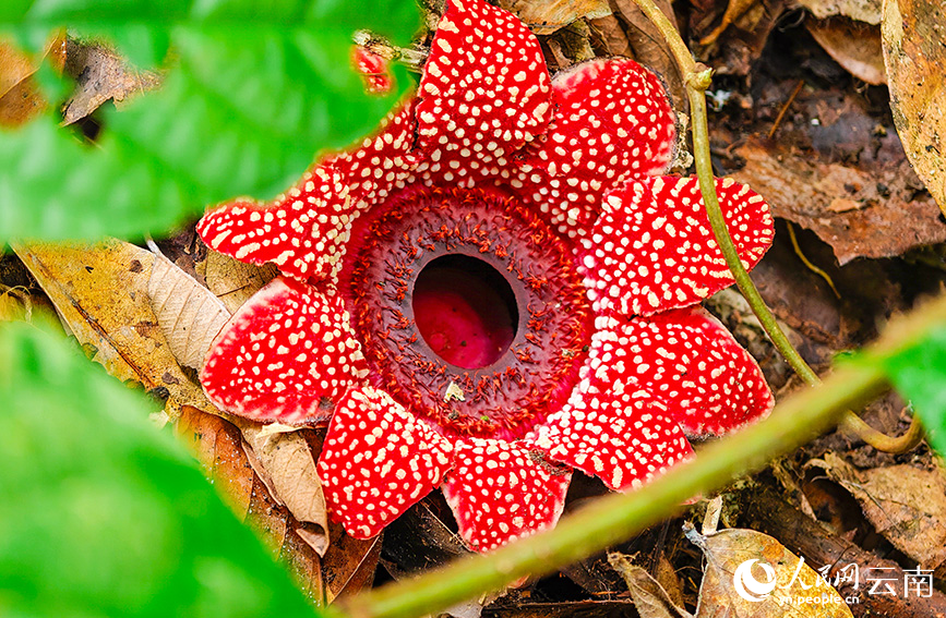 Sapria himalayana, sejenis bunga holoparasit yang jarang didapati dan dianggap pupus di China selama hampir tiga dekad, pada baru-baru ini ditemui semula oleh peminat fotografi di Gunung Jingmai, kaunti Lancang, bandar Pu’er, Provinsi Yunnan, barat daya China.