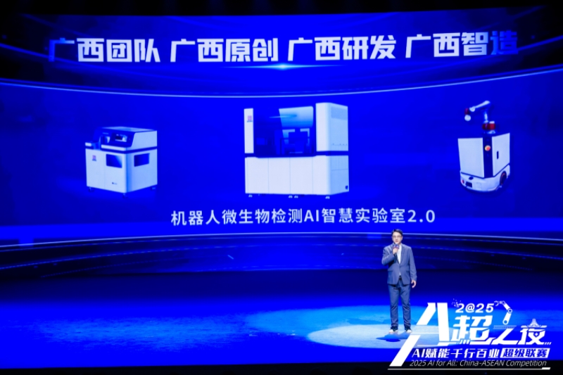 Melalui kolaborasi dengan Institut Kawalan Ubat-ubatan Guangxi, syarikat Guangxi Pinge Intelligent Life Sciences Co., Ltd. telah membangunkan makmal pintar AI 2.0 yang mampu mengesan mikrob menerusi proses “pemeriksaan robot + analisis AI” yang digital sepenuhnya. Produk ini sudah pun diperkenalkan ke Korea Selatan dan India, dan kini sedang dipromosikan di ASEAN.