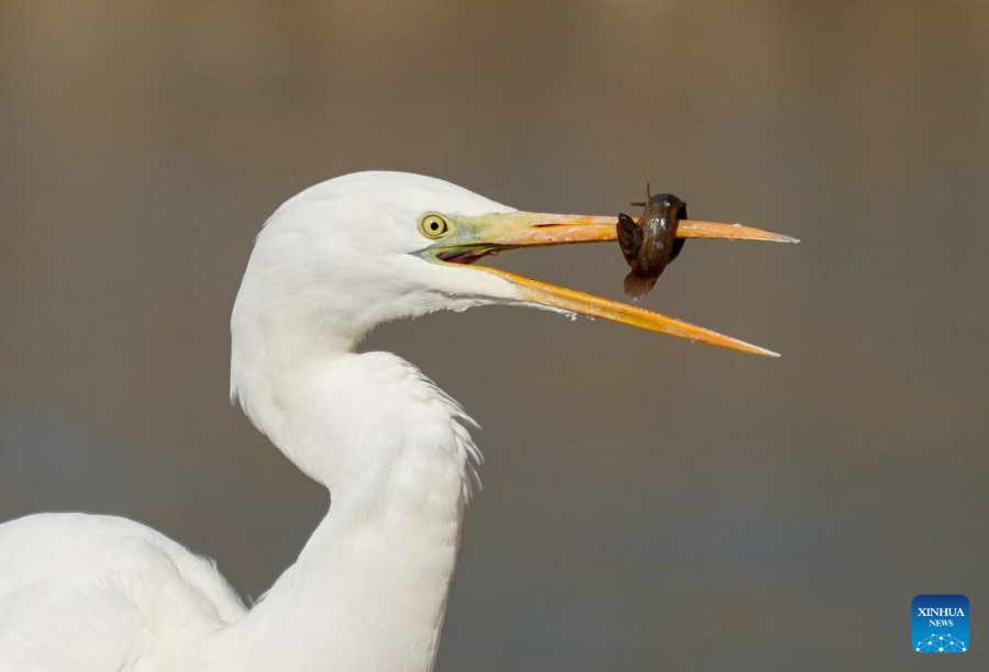 | Bangau berehat di sebuah taman tanah basah di Taiyuan, provinsi Shanxi, utara China, 22 Januari 2026. (Xinhua/Yang Chenguang) |