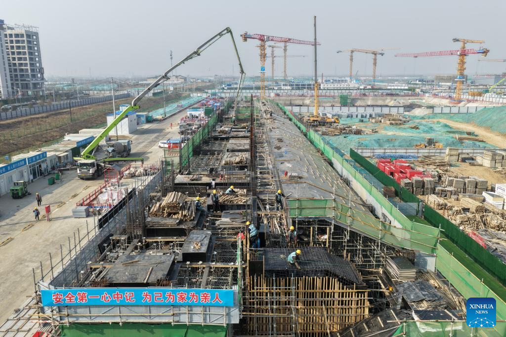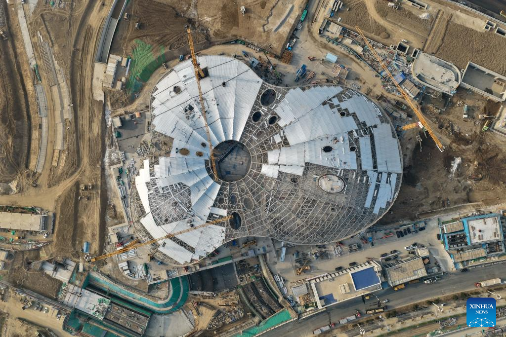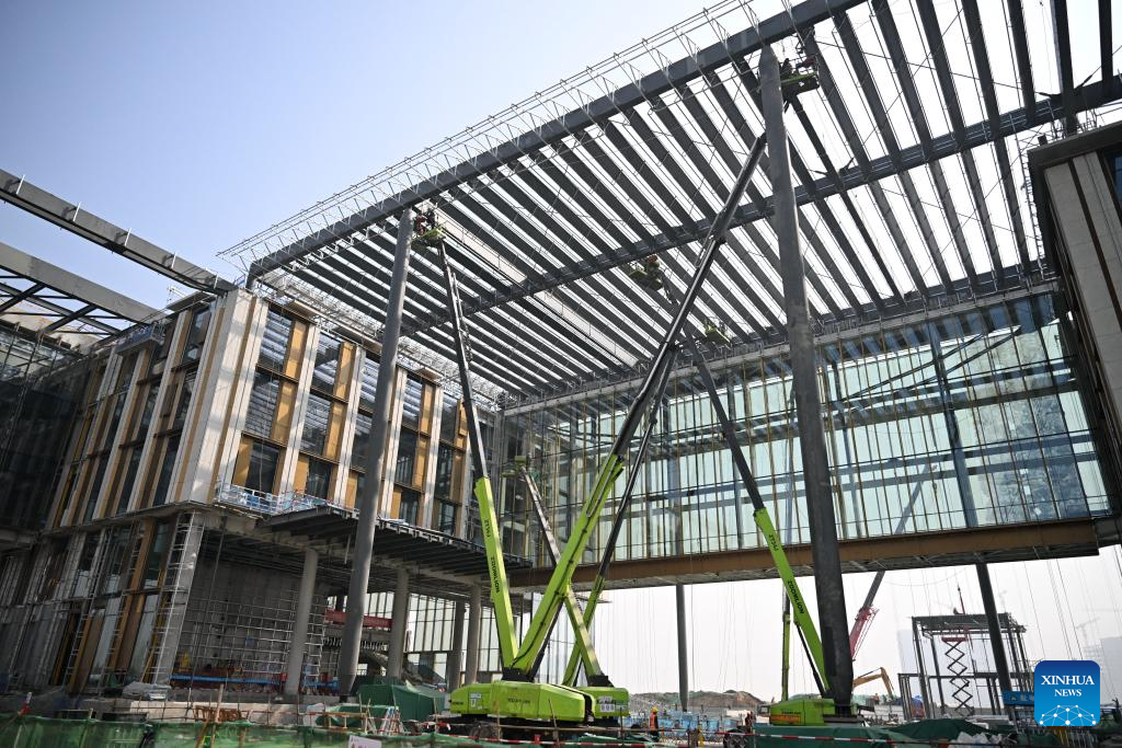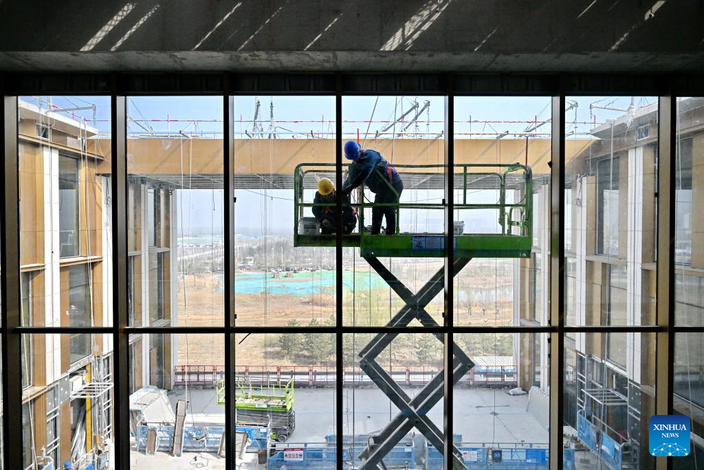 | Foto bertarikh 25 Mac 2026 menunjukkan pemandangan di tapak pembinaan ibu pejabat China Mineral Resources Group Ltd. di Kawasan Baharu Xiong’an, provinsi Hebei, utara China. |