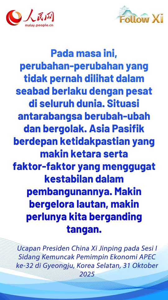 Presiden China Xi Jinping menyampaikan ucapan bertulis sempena Sidang Kemuncak Ketua Pegawai Eksekutif (CEO) Kerjasama Ekonomi Asia Pasifik (APEC) yang diadakan di Gyeongju, Korea Selatan pada Jumaat.