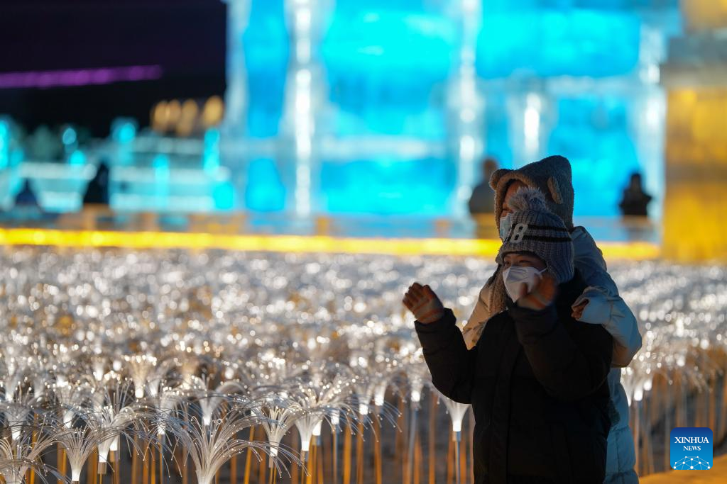 | Pelancong melawat Dunia Ais-Salji Harbin, sebuah taman hiburan bermusim di bandar Harbin, provinsi Heilongjiang, timur laut China pada 17 Disember 2022. (foto: Wang Song/Xinhua) |