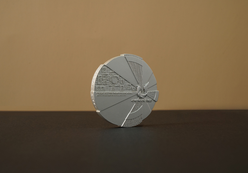 Bahagian hadapan pingat perak FISU Chengdu. (foto diberikan oleh Jawatankuasa Eksekutif FISU Chengdu)