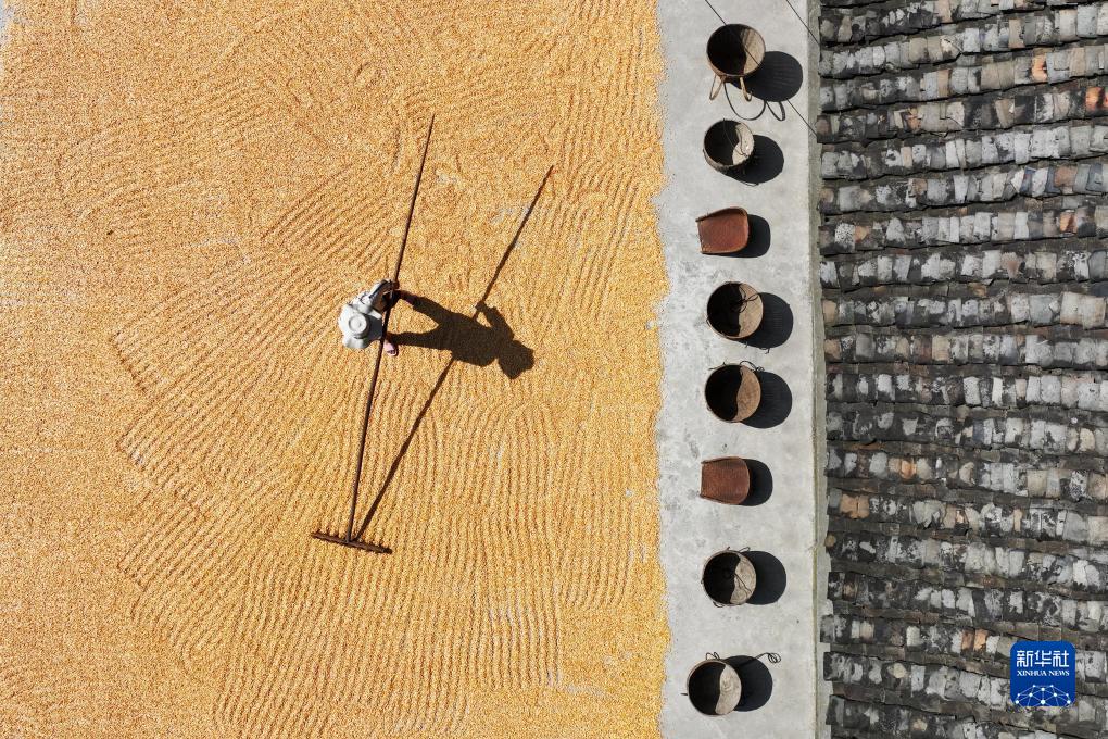 Petani di China Sibuk Jemur Bijirin pada Hari Chushu (4)