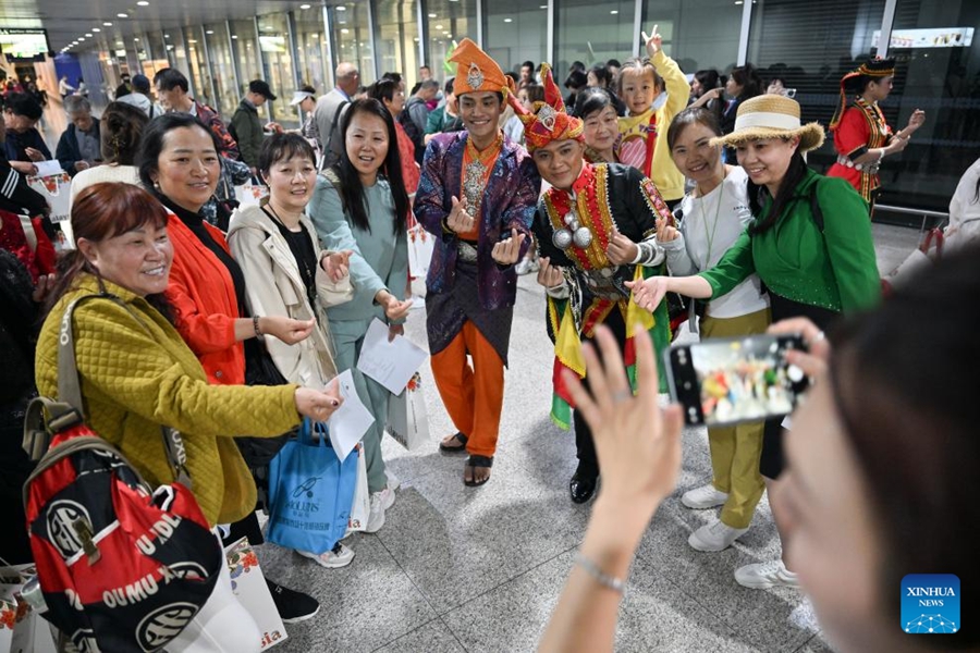 | Penumpang penerbangan MU9629 bergambar dengan kakitangan di Lapangan Terbang Antarabangsa Kuala Lumpur, Malaysia, 16 Mac 2024. (Xinhua/Cheng Yiheng) |