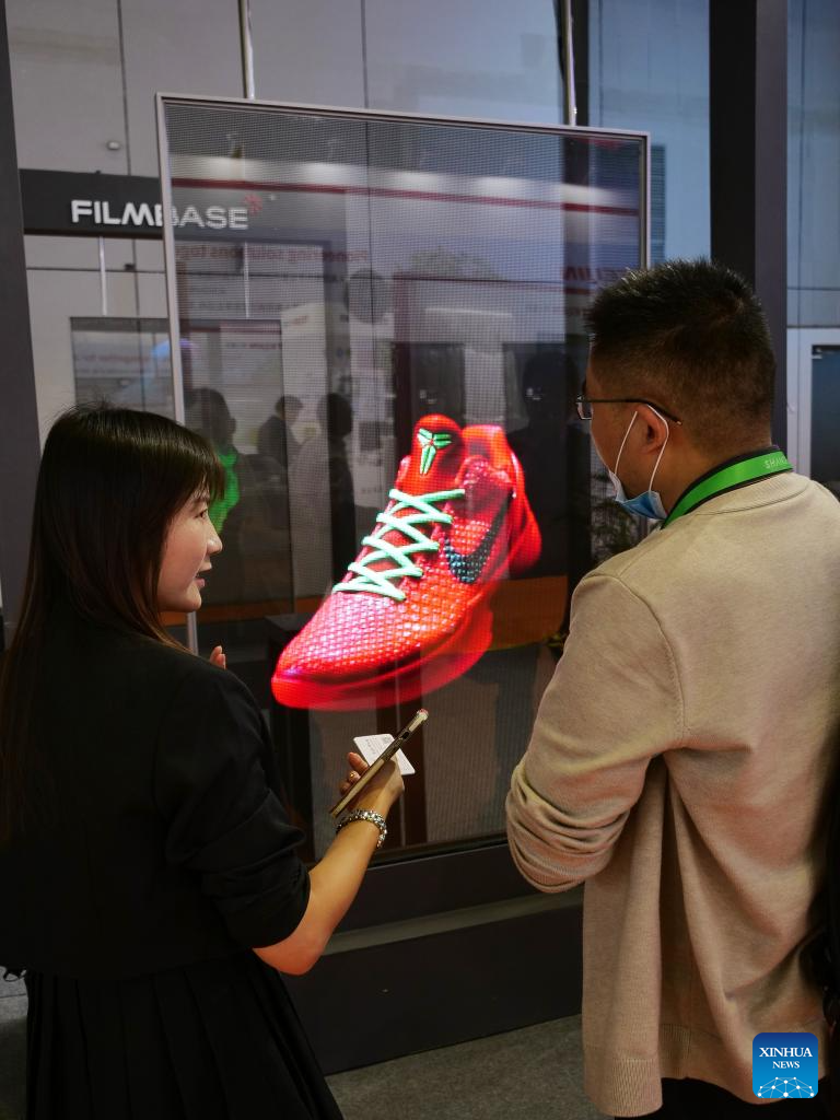 | Pengunjung melihat sebuah paparan lut sinar pada Ekspo Import Antarabangsa China (CIIE) ke-7 di Shanghai, 5 November 2024. Edisi terbaru CIIE, iaitu ekspo peringkat negara pertama di dunia yang bertemakan import, membuka tirai di Shanghai, Selasa. (Xinhua/Wang Yiliang) |