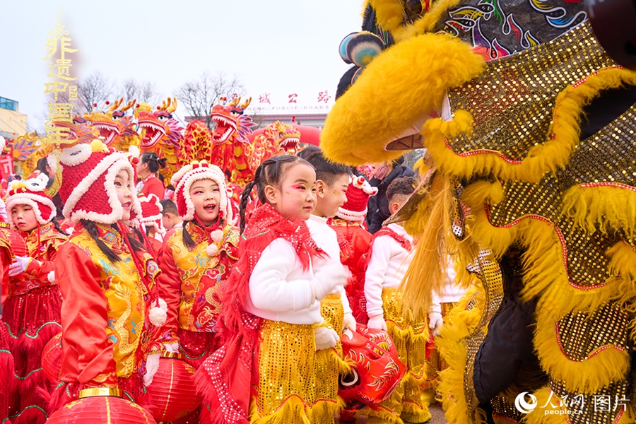 | Persembahan tarian singa menghidupkan suasana di Plaza Sukan Yangdian, bandar Jincheng, provinsi Shanxi, 11 Februari 2025. (People’s Daily Online/Zhang Chaoning) |