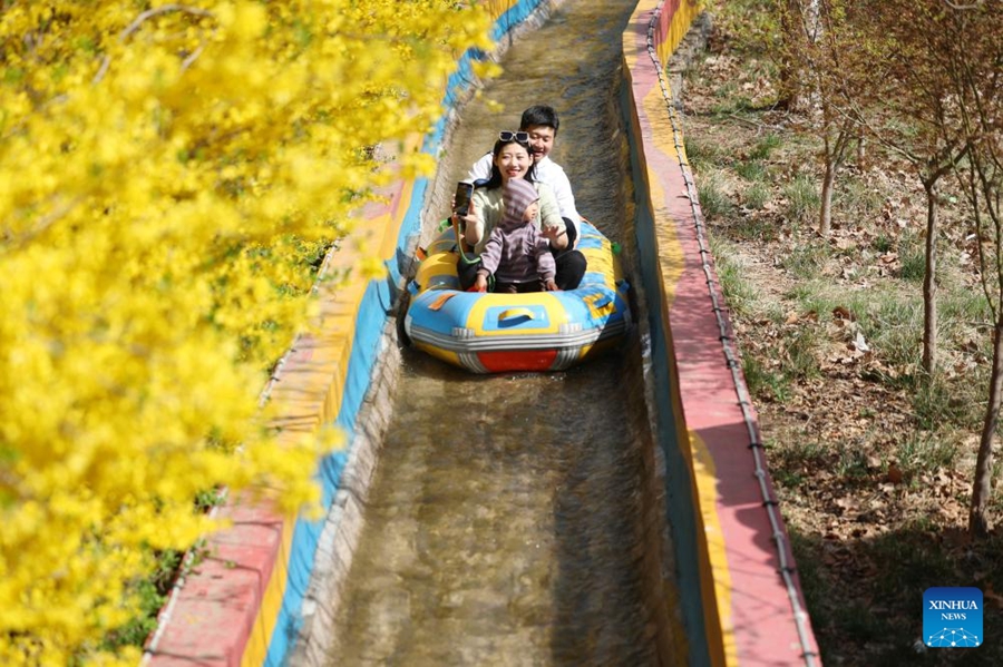 | Orang bermain gelongsor air di kampung Zhuquan, bandar Linyi, provinsi Shandong, timur China, 6 April 2025. (Foto oleh Wang Yanbing/Xinhua) |
