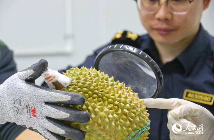 | Kakitangan kastam memeriksa barangan. (People’s Daily Online/Huo Yaping) |