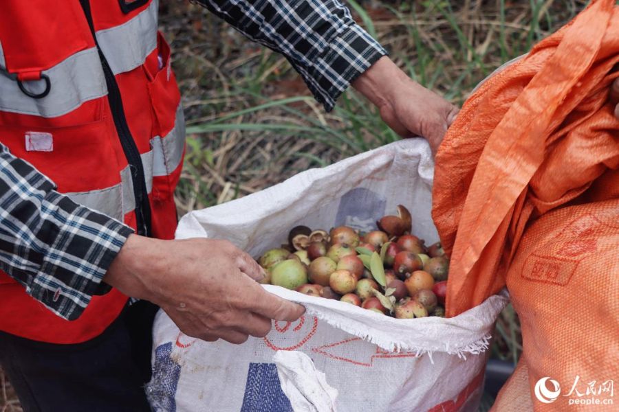| Foto menunjukkan buah teh minyak camellia yang dituai di kaunti Yongtai, bandar Fuzhou, Provinsi Fujian di tenggara China. (People’s Daily Online/Lin Mingxian) |
