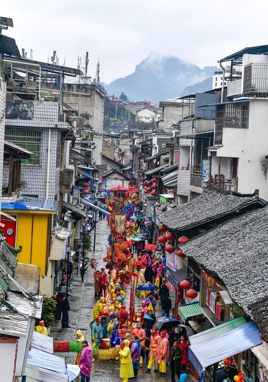 | Orang ramai menghadiri perarakan pada “Pesta Maolong” etnik Yilao di kaunti Shiqian, provinsi Guizhou, barat daya China, 27 Februari 2026. (Xinhua/Yang Wenbin) |