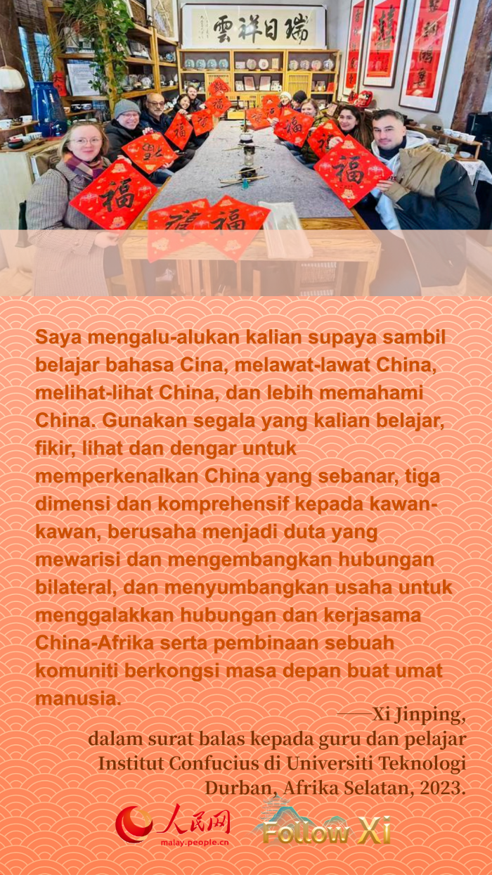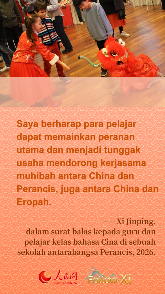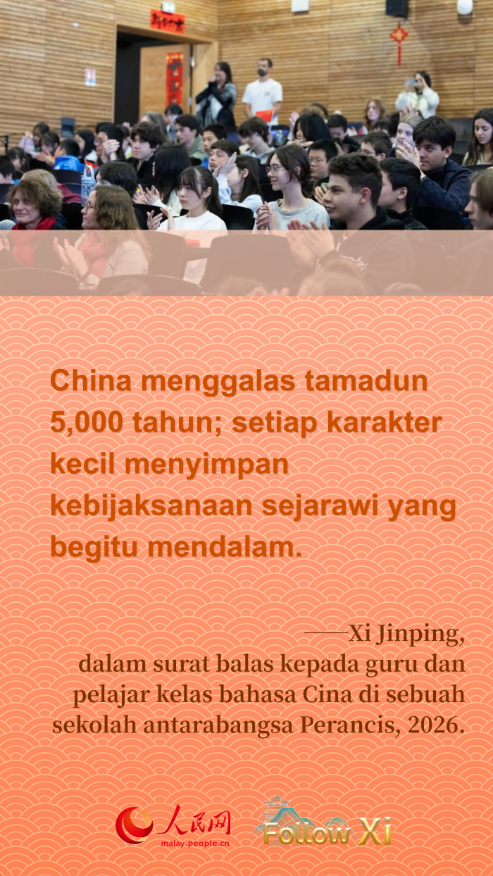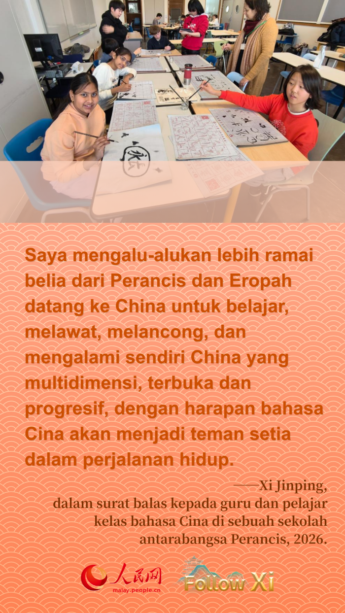Demikian kata-kata galakan daripada Presiden Xi Jinping, dalam surat balas kepada guru dan pelajar kelas bahasa Cina di Sekolah Antarabangsa Provence-Alpes-Cote d'Azur, Perancis, baru-baru ini.