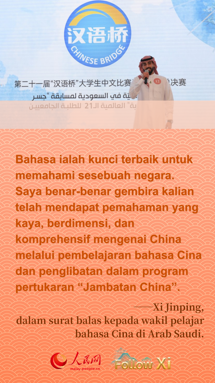 Pada tahun-tahun kebelakangan ini, Xi banyak membalas surat pelajar dari seluruh dunia, menggalakkan mereka belajar bahasa Cina dengan baik, dan datang ke China untuk menimba pengalaman agar lebih memahami negara ini. Galakan dan tunjuk ajar daripada Presiden Xi telah menyemarakkan minat kian ramai pelajar di merata dunia untuk mendalami rahsia yang terkandung dalam karakter Cina, lebih memahami dan mencintai China, di samping menanam aspirasi untuk menjadi duta persahabatan antara China dan dunia.