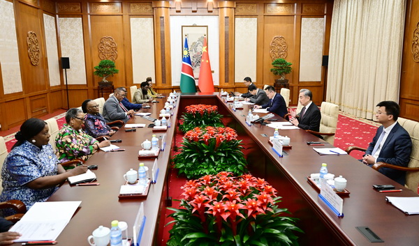 Menteri Luar China Wang Yi menerima kunjungan Menteri Hubungan Antarabangsa dan Perdagangan Namibia Selma Ashipala-Musavyi di Beijing pada Jumaat.