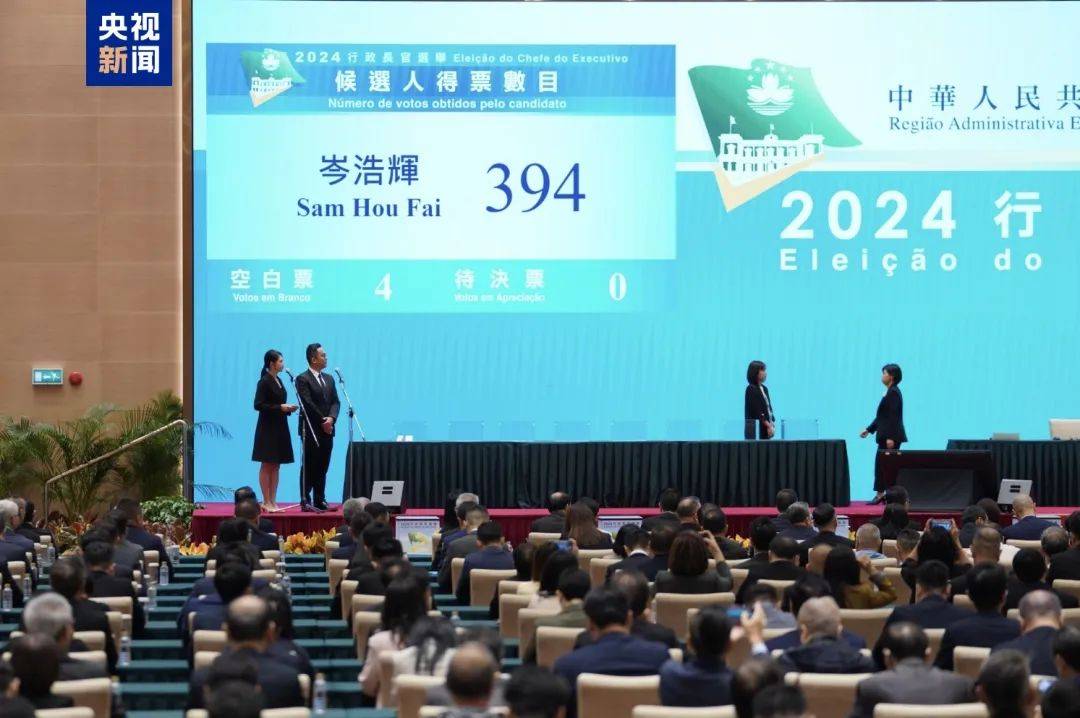 Sam Hou Fai menang besar dalam Pemilihan Ketua Eksekutif Wilayah Pentabiran Khas Macao untuk pentadbiran penggal ke-6 yang diadakan hari ini, dengan memperoleh majoriti 394 undi daripada 400 orang anggota jawatankuasa pemilihan.