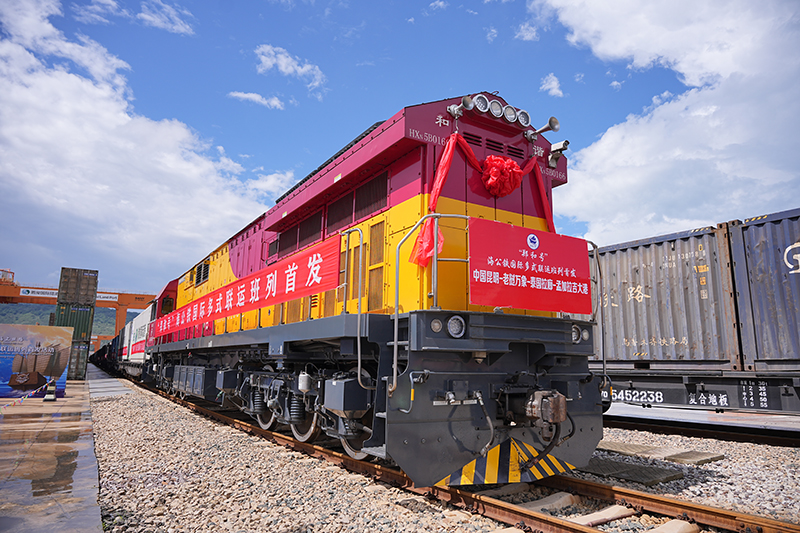 Pada 4 Julai, kereta api pertama Perkhidmatan Pelbagai Mod Antarabangsa Laut-Darat-Rel ‘Zheng He’ telah meninggalkan Kunming. Setibanya di Vientiane, Laos menerusi Kereta Api China-Laos, barang-barang tersebut dihantar ke Thailand, Singapura dan Bangladesh melalui tiga laluan lain.