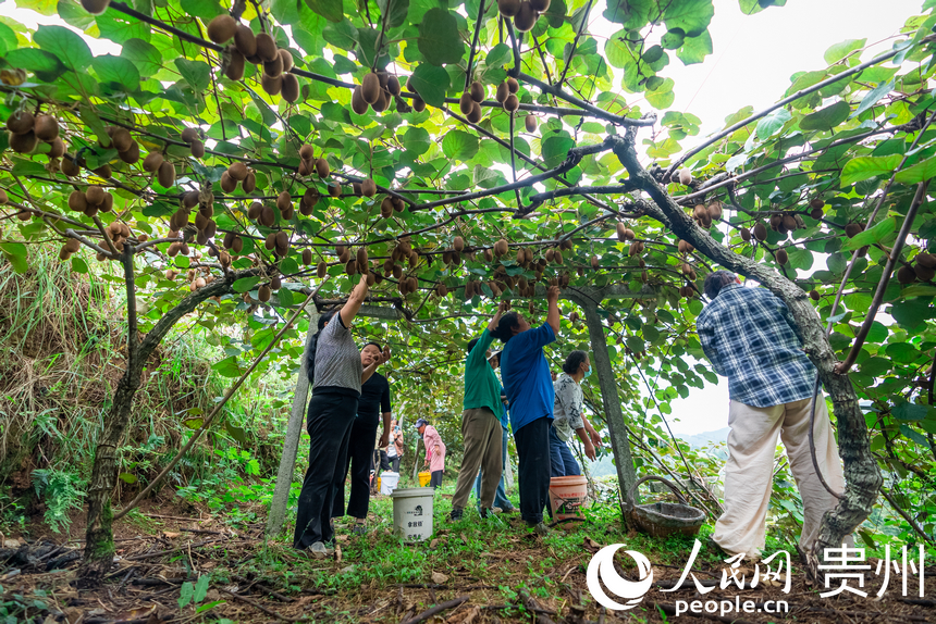 Musim menuai telah bermula pada 21 September di kebun buah kiwi yang seluas 12,000 mu (800 hektar) di kampung Pingtan, pekan Gubao, kaunti Xiuwen, Guiyang, Provinsi Guizhou di barat daya China.