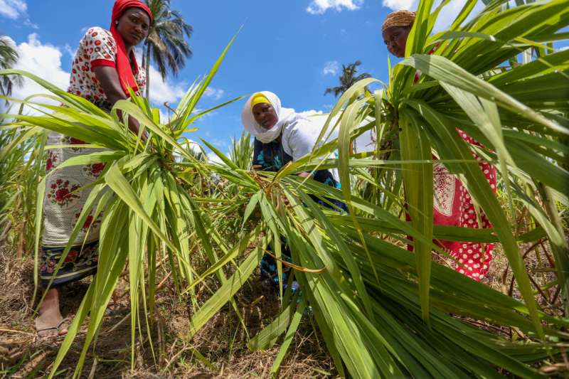 Wanita di Zanzibar Tanzania mengumpul Juncao. Teknologi Juncao yang disediakan China telah membantu wanita di 106 negara mendapat peluang kerja.