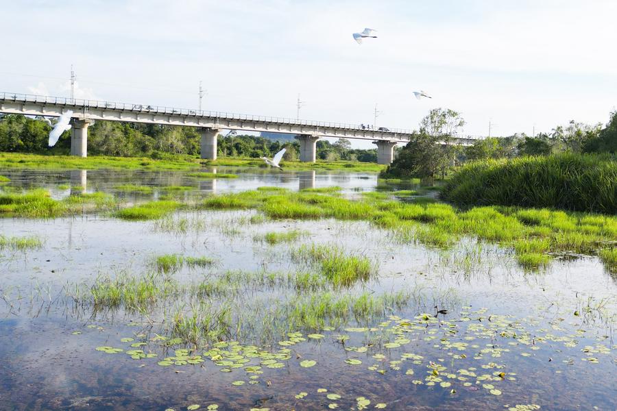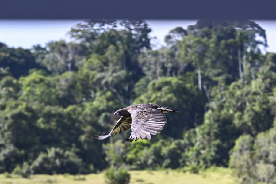 | Seekor burung terbang berdekatan dengan lokasi projek ECRL di Pahang, Malaysia. (Xinhua) |