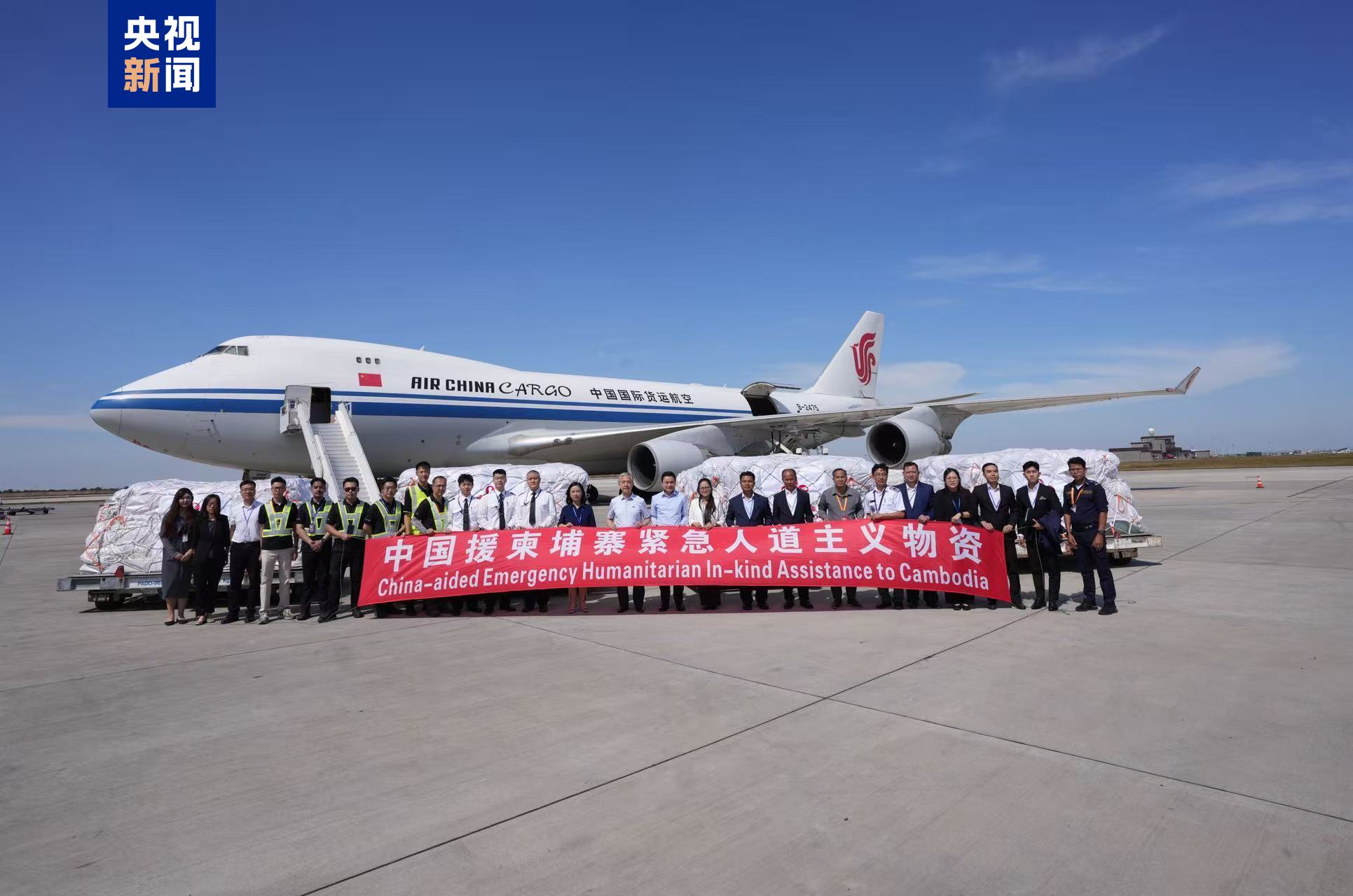 Kumpulan pertama bantuan kemanusiaan yang disumbangkan China kepada Kemboja selamat tiba di Lapangan Terbang Antarabangsa Techo di Phnom Penh pada Ahad.
