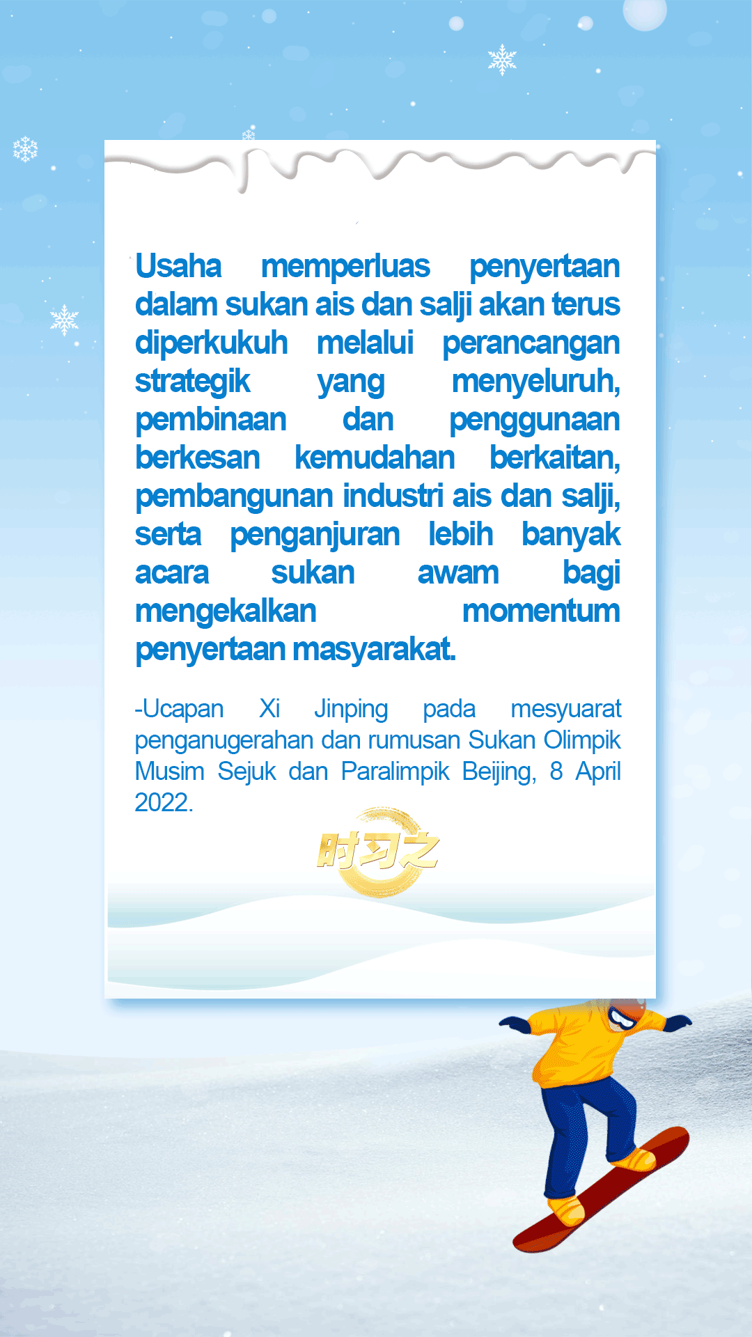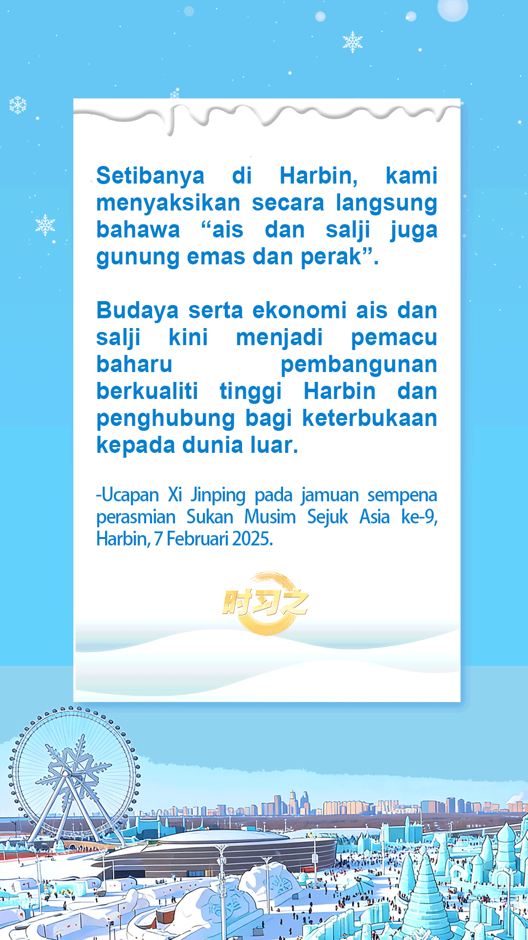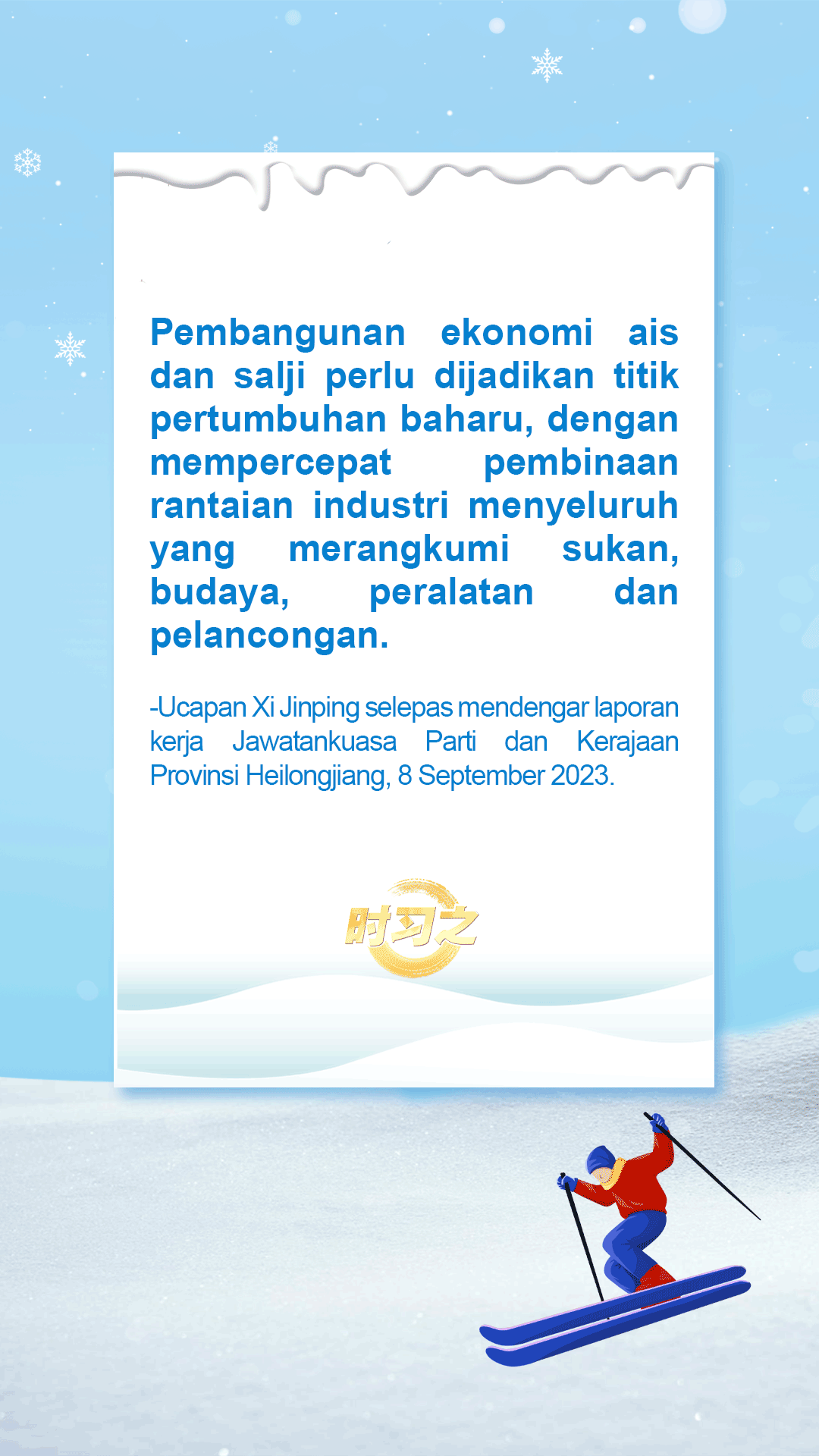 Seperti yang ditegaskan oleh Presiden China Xi Jinping, “Industri ais dan salji merupakan industri berskala besar yang amat berpotensi.”