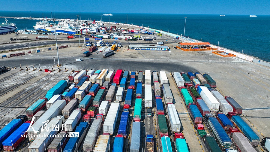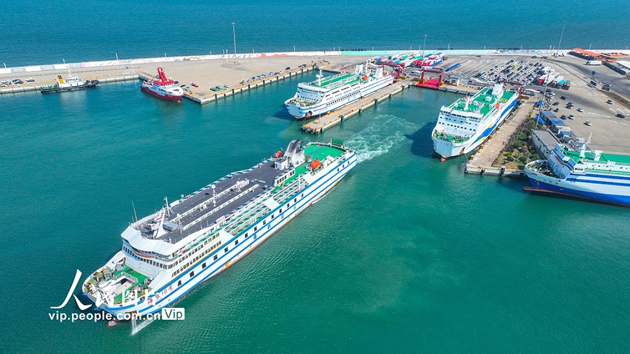 Suasana teratur dan sibuk kelihatan di sebuah pelabuhan di Haikou, ibu provinsi Hainan, apabila deretan kenderaan beratur untuk menaiki feri penumpang jenis roll-on/roll-off pada 2 Februari.