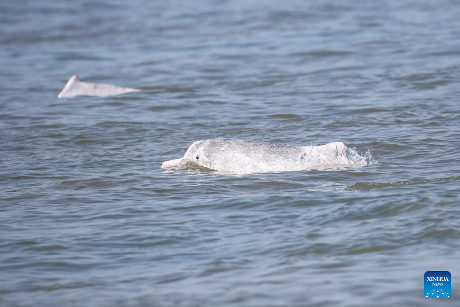 | Foto bertarikh 4 Februari 2026 menunjukkan dolfin putih China di perairan sekitar provinsi Hainan, selatan China. (Xinhua) |