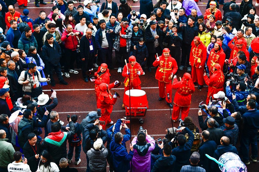 | Foto dron menunjukkan upacara pembukaan “Pesta Maolong” etnik Yilao di kaunti Shiqian, provinsi Guizhou, barat daya China, 27 Februari 2026. (Xinhua/Yang Wenbin) |